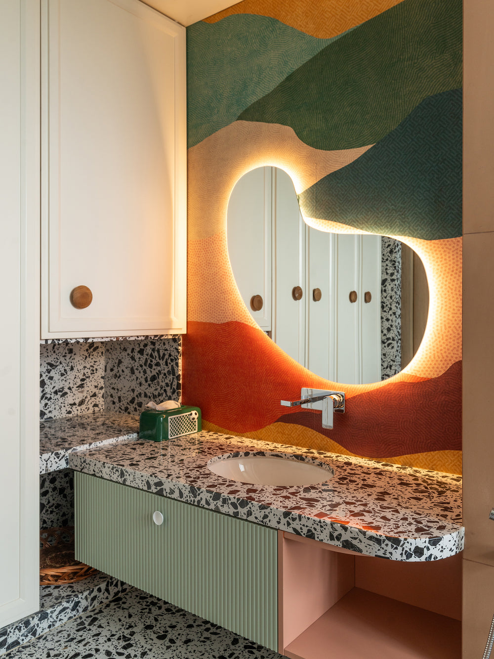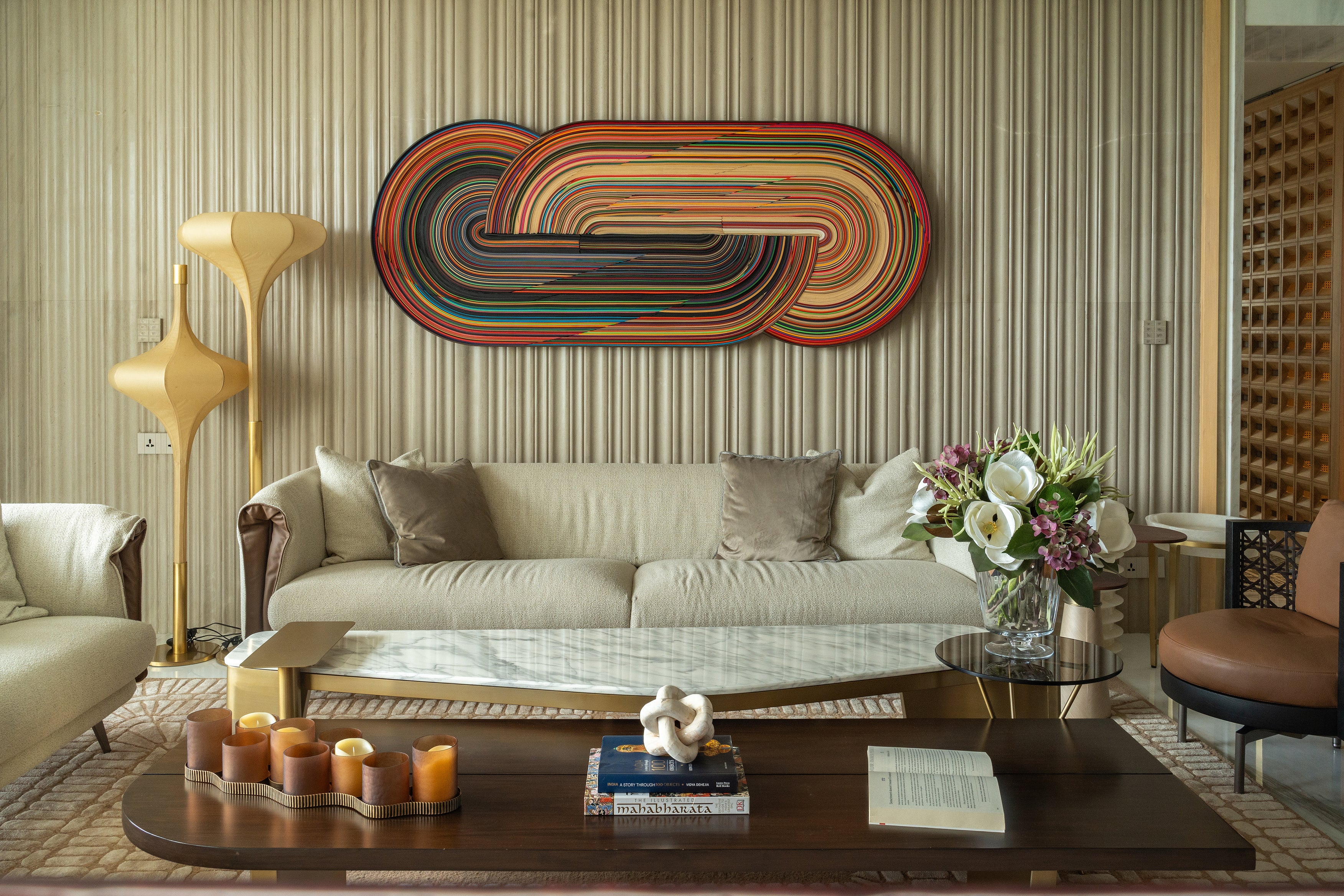 Taking notes from Japandi designs, minimalism formed the core of this project with layers like exotic stones, artistic furniture and curated artwork stitching it all together.